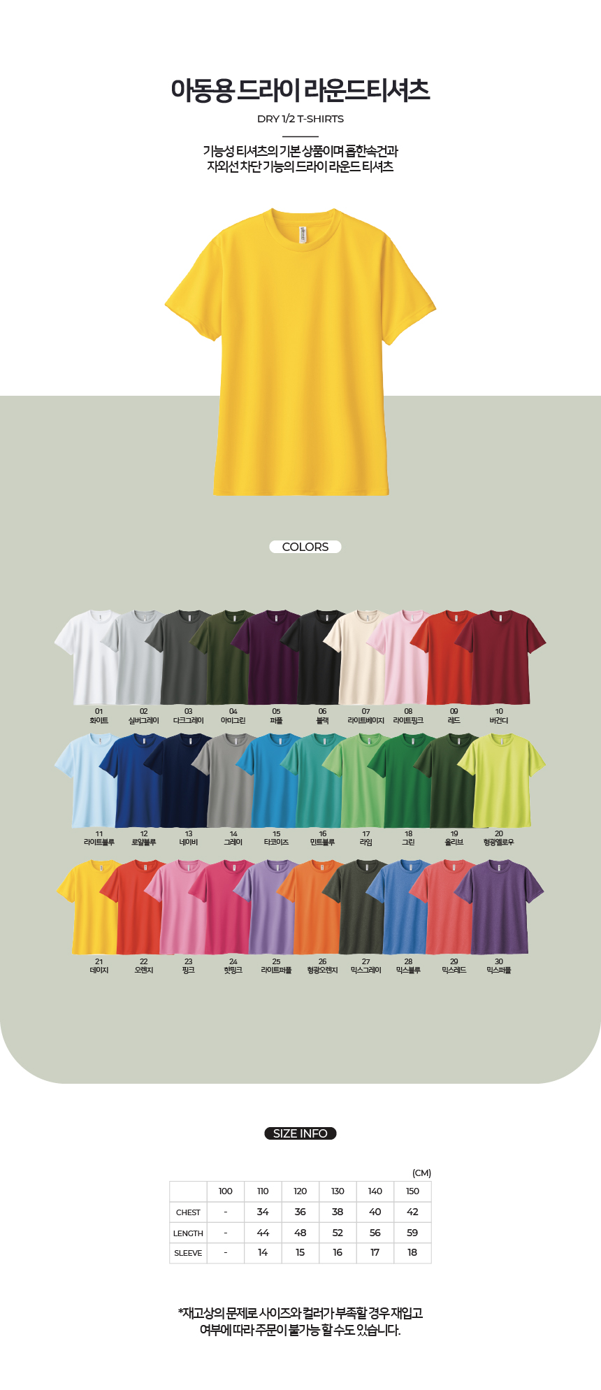 기능성 티셔츠의 기본 상품이며 흡한속건과 자외선 차단 기능의 드라이 라운드 티셔츠
