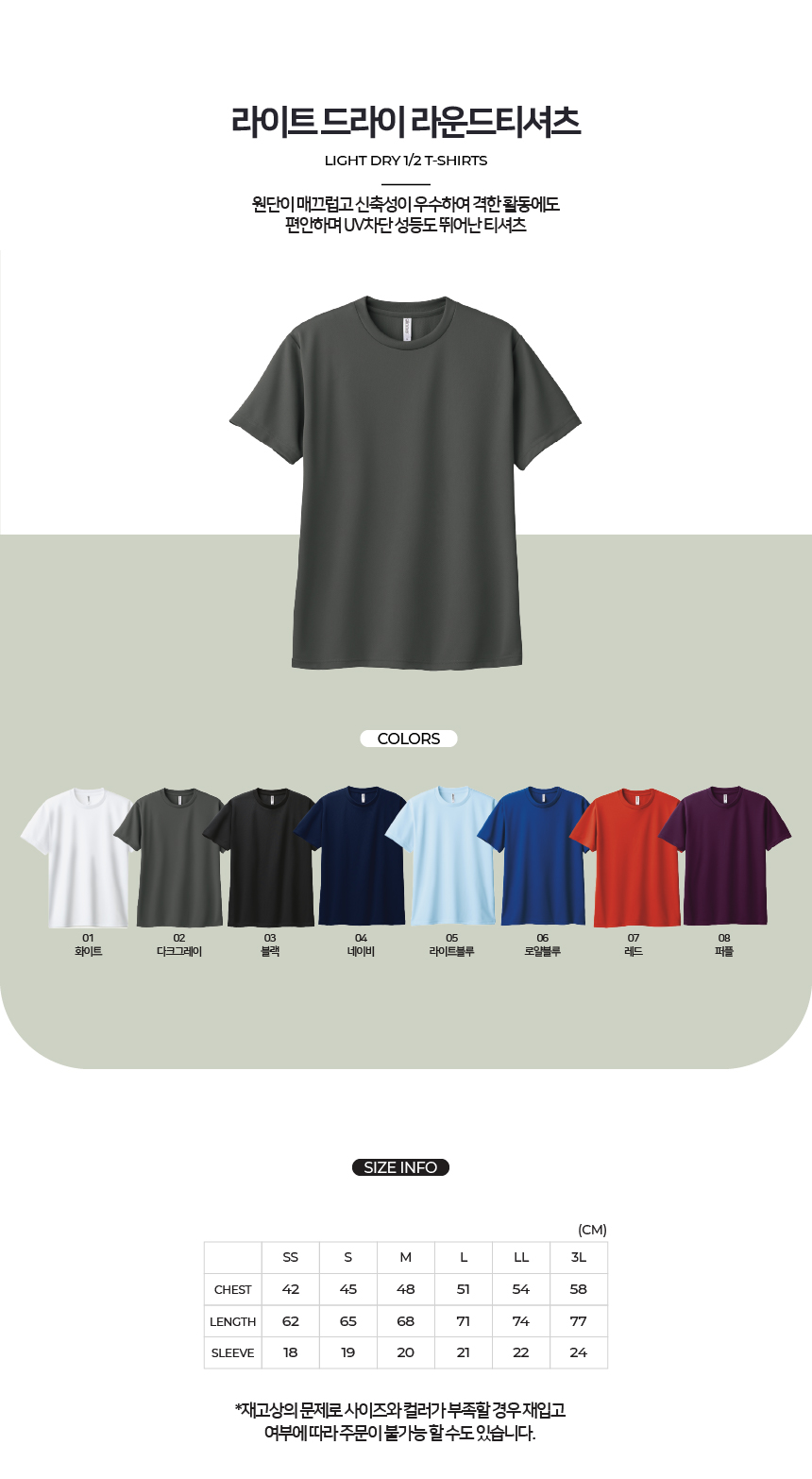 원단이 매끄럽고 신축성이 우수하여 격한 활동에도 편안하며 UV차단 성능도 뛰어난 티셔츠